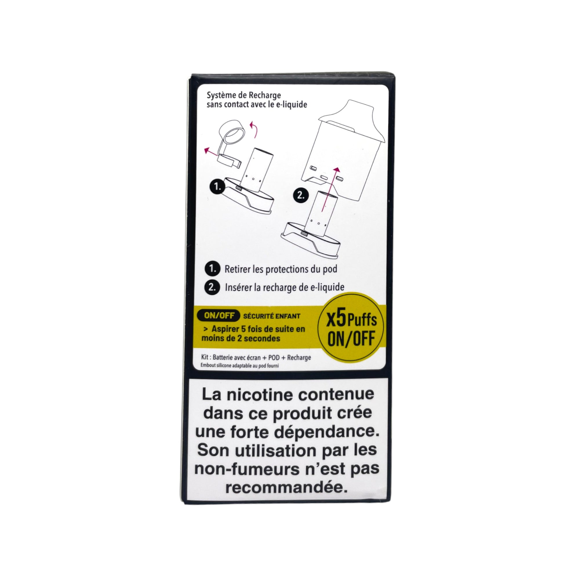 Dual pod: 2 ml pre-filled (TPD compliant) + 10 ml tank/automatic refill