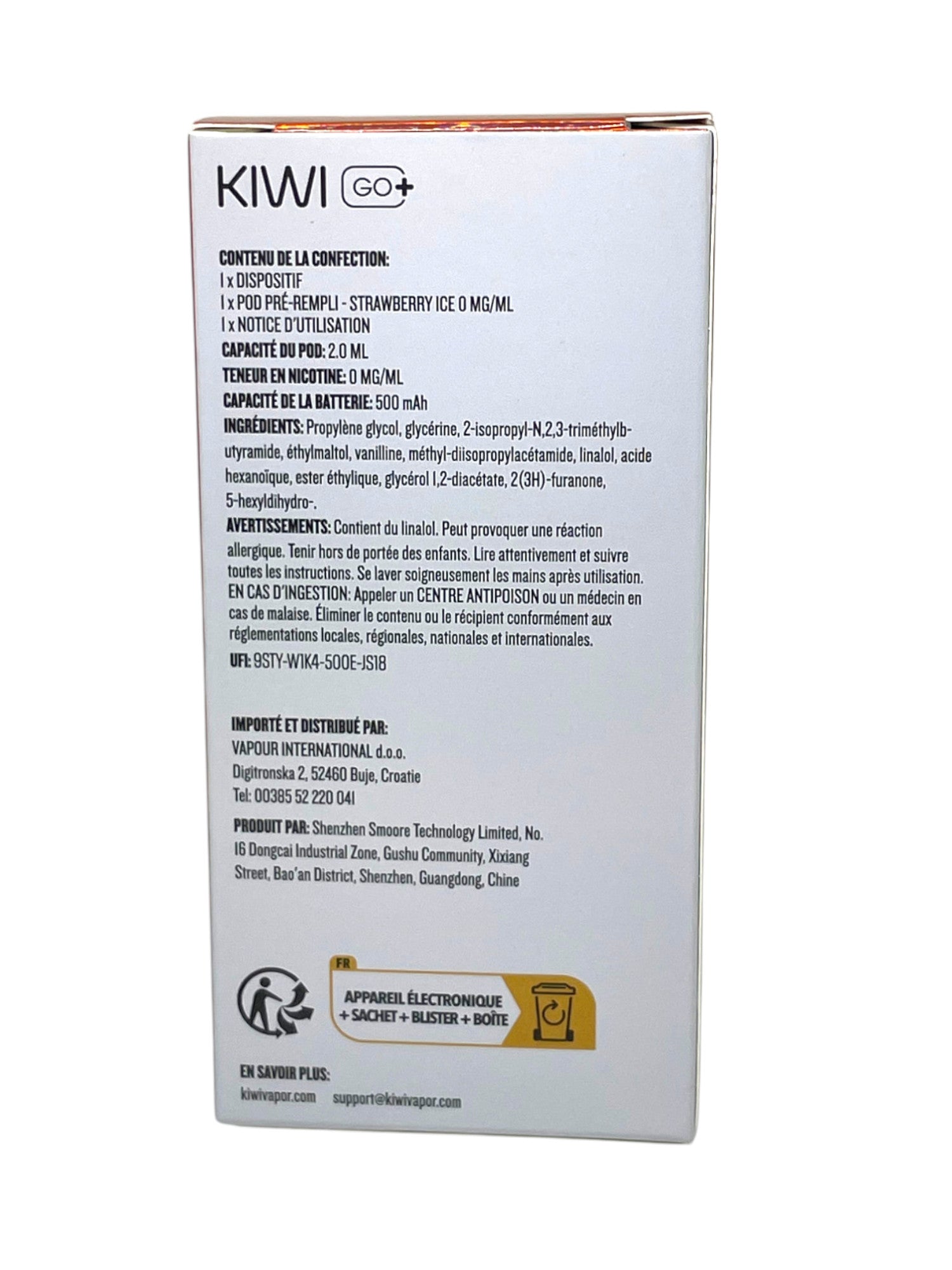 Il Kiwi Go+ è un kit di sigaretta elettronica composto da una batteria integrata da 500 mAh, che offre un'autonomia aumentata del 25 %.