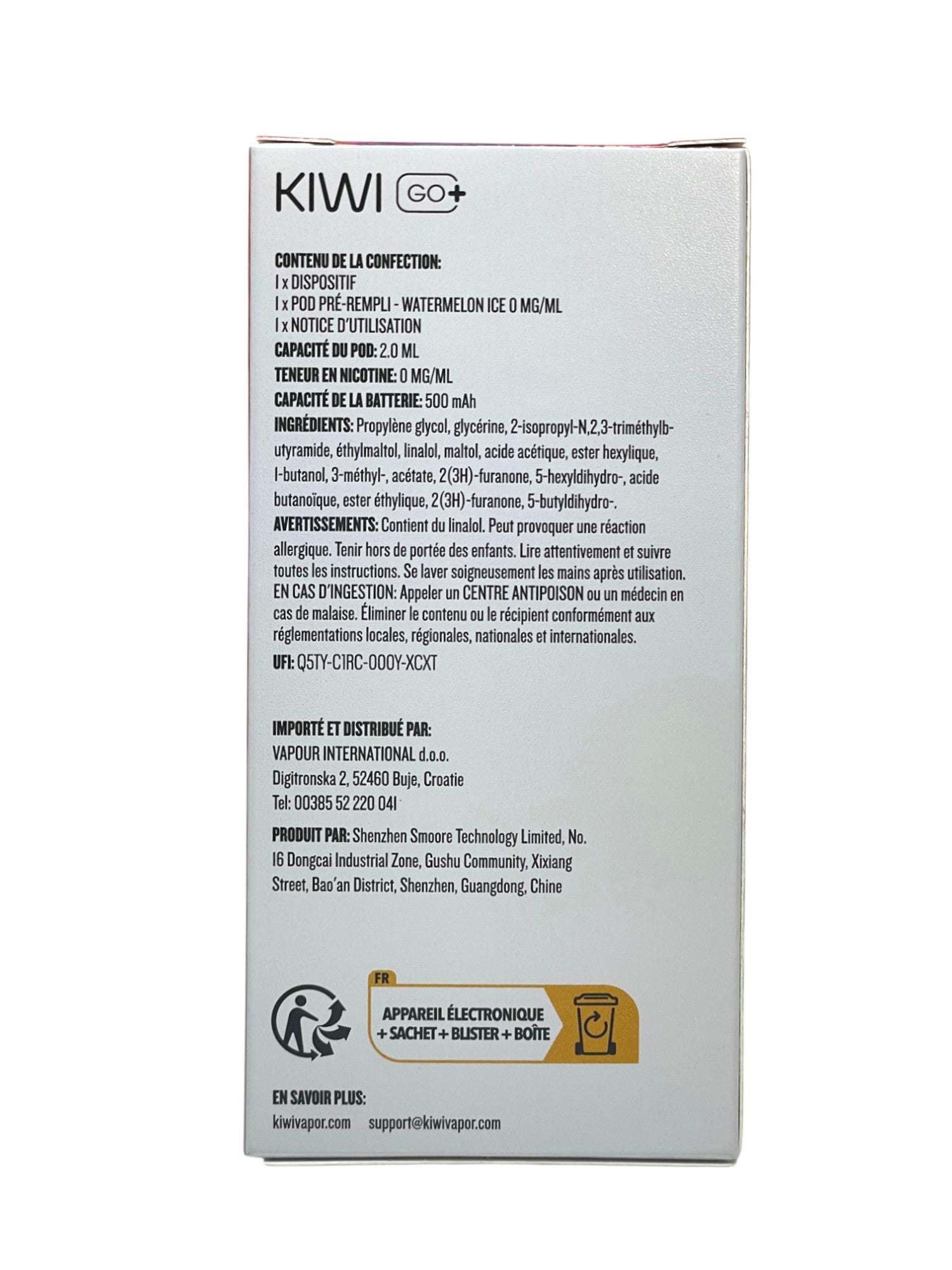 Il Kiwi Go+ è un kit di sigaretta elettronica composto da una batteria integrata da 500 mAh, che offre un'autonomia aumentata del 25 %.