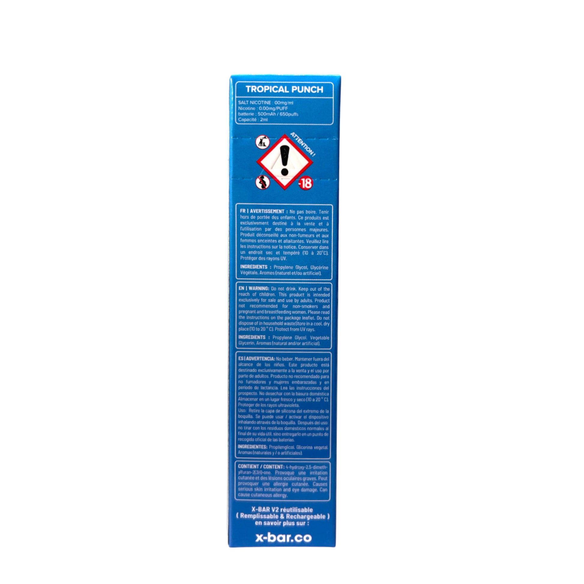 X-BAR rivoluziona la Puff con questa nuova versione riutilizzabile, la V2. Una volta esaurito il liquido, puoi riempirla di nuovo grazie al piccolo tappo integrato nella parte superiore. Inoltre, è ora possibile ricaricarla tramite USB-C (cavo non incluso).